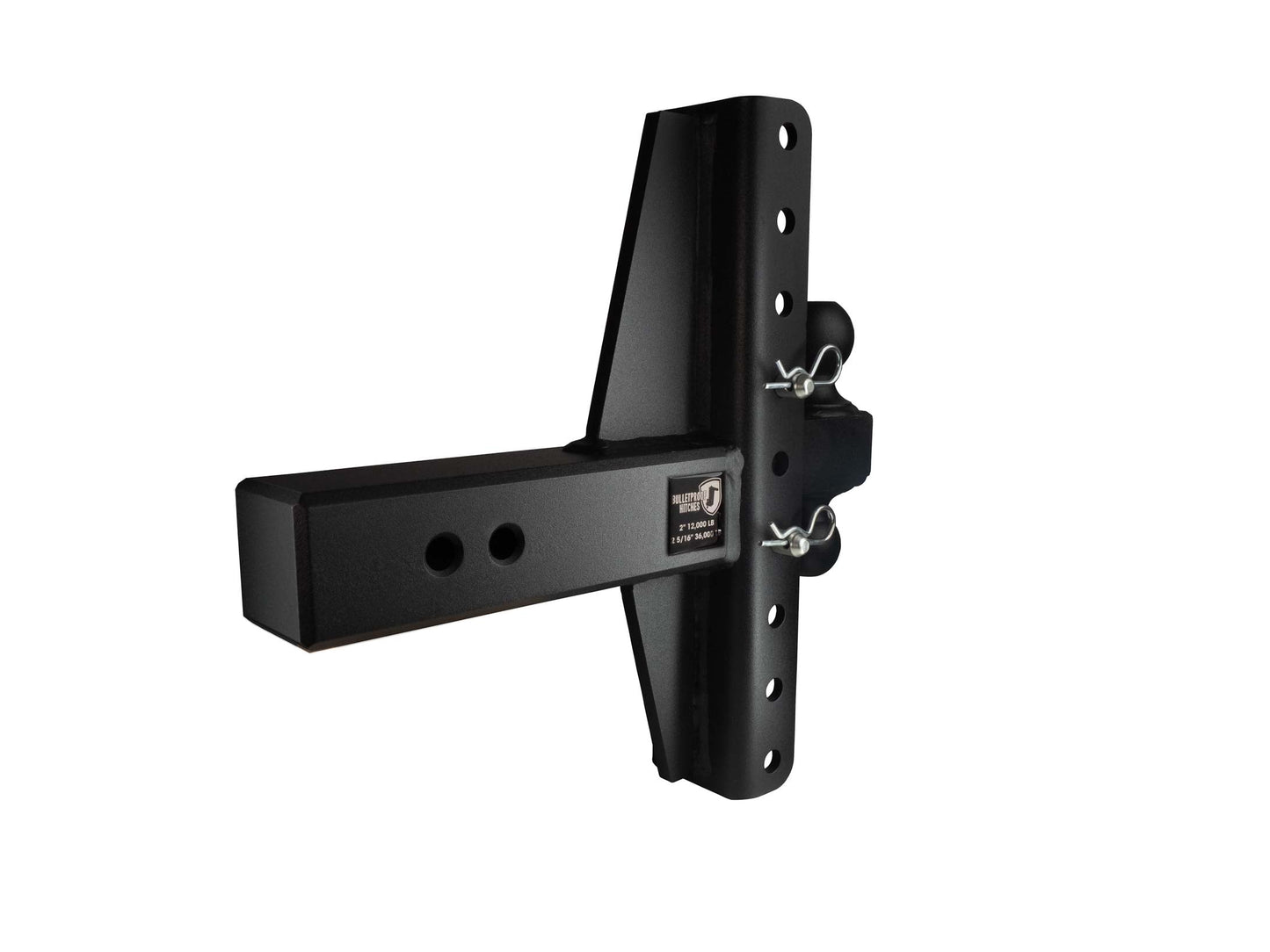 The Heavy Duty and Extreme Duty hitch shanks are solid steel all the way through and has chamfered edges so that they can easily slide into & out of your hitch receiver. The solid steel shank also comes with two pin holes for more adjustment options. The textured powder-coated finish creates a durable surface to help protect your hitch.