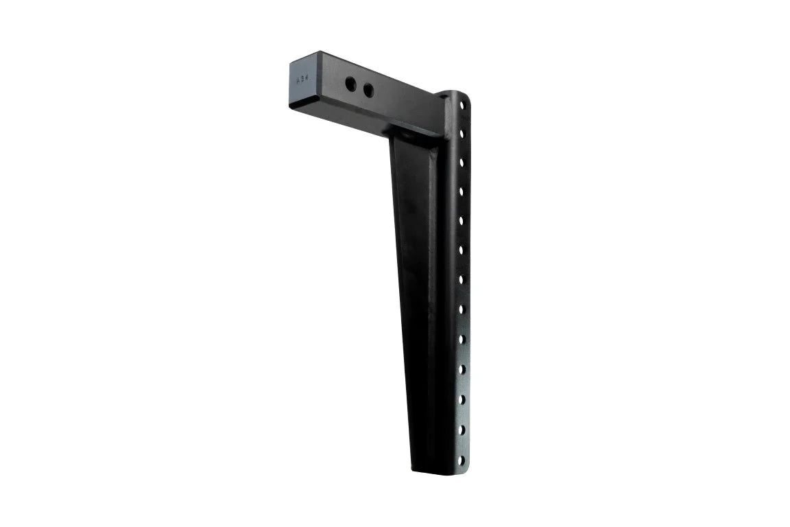 The Heavy Duty and Extreme Duty hitch shanks are solid steel all the way through and have chamfered edges so that they can easily slide into & out of your hitch receiver. The solid steel shank also comes with two pin holes on the shank for more adjustment options.