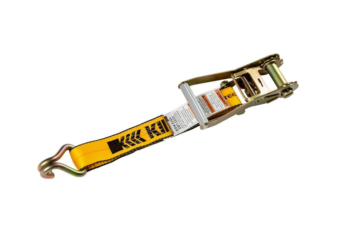 This 2-inch strap is a standard Kinedyne Gold with Black Edge 2084F webbing. It features a narrow, wire hook and the ratchet is a heat-treated steel to secure your load.