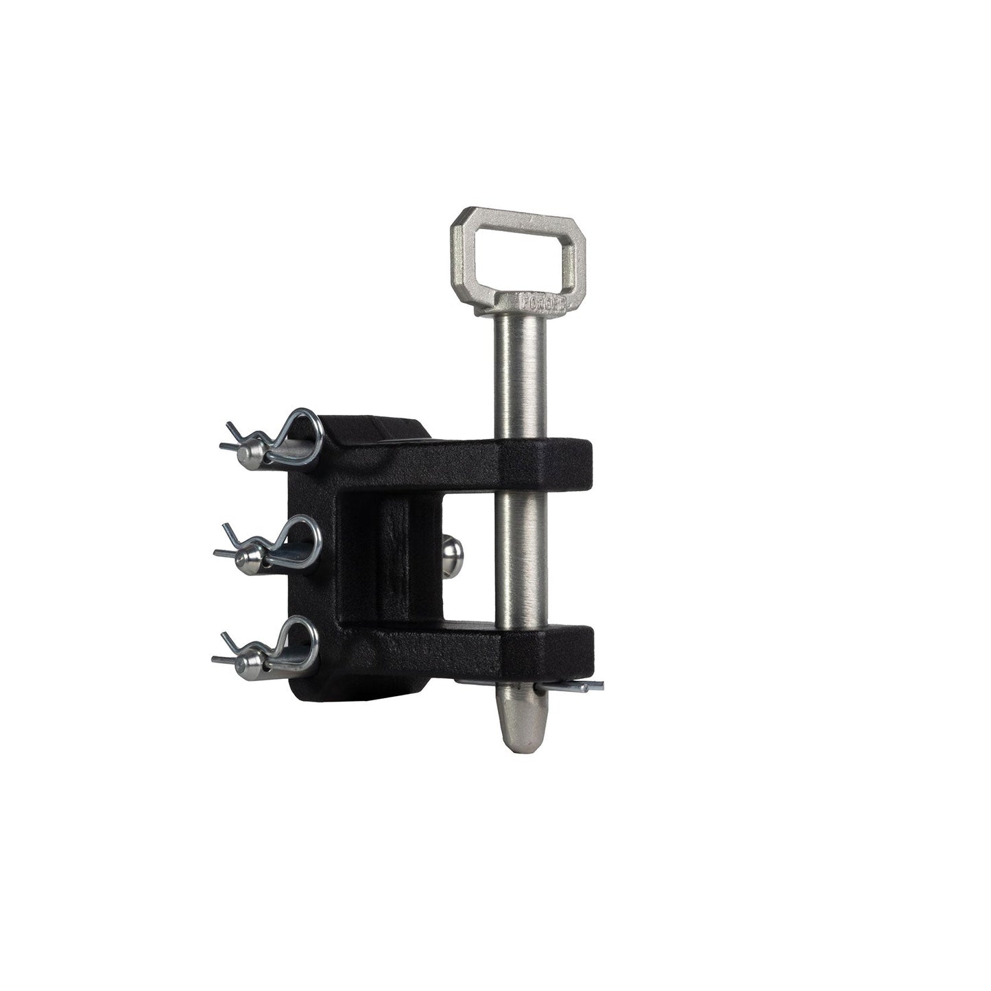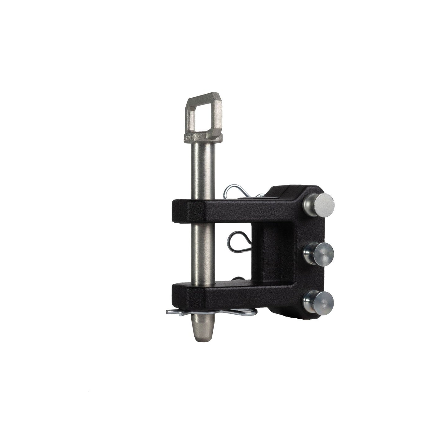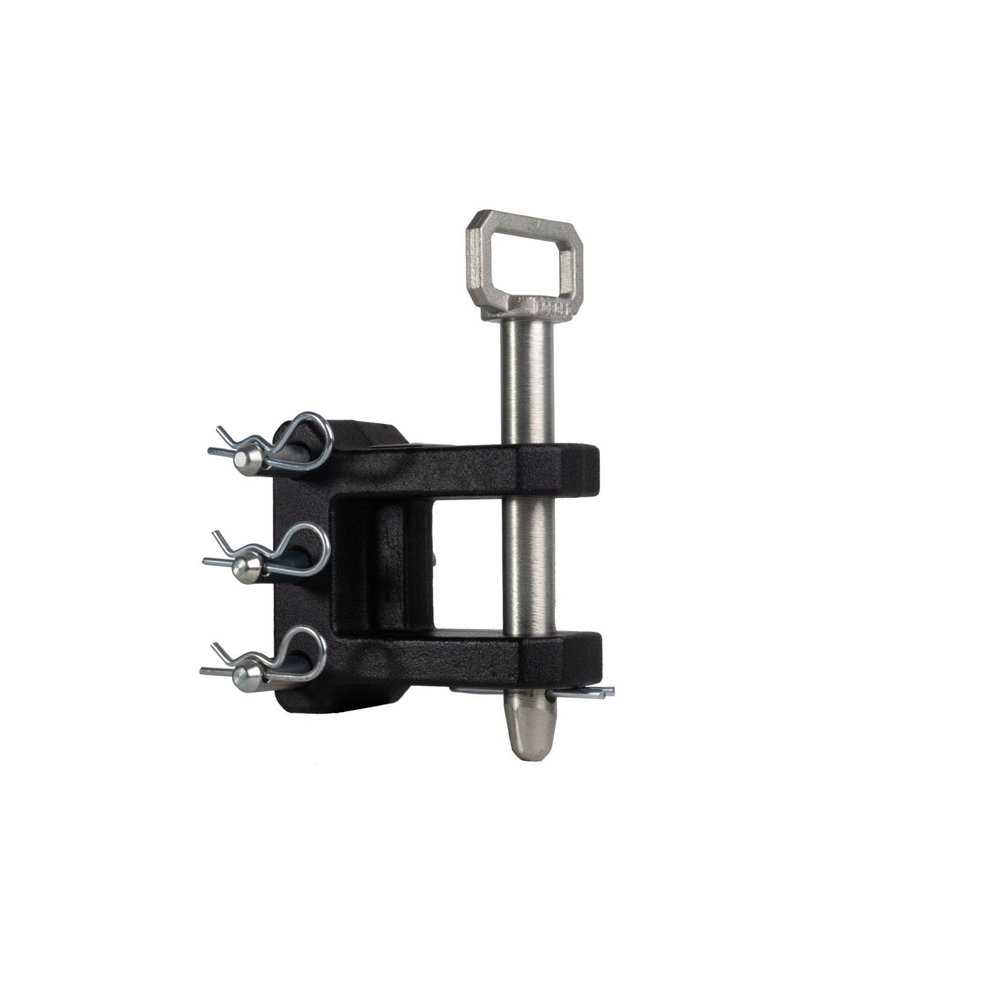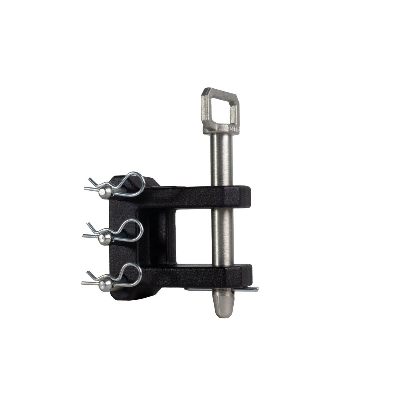 The Heavy Duty 2-Tang Clevis Attachment features a 1" pin and a 2-3/8" opening, this allows a connection to a Lunette Ring or a farm-style drawbar. It will enable you to tow with farming equipment, pintle trailers, even chains and straps!