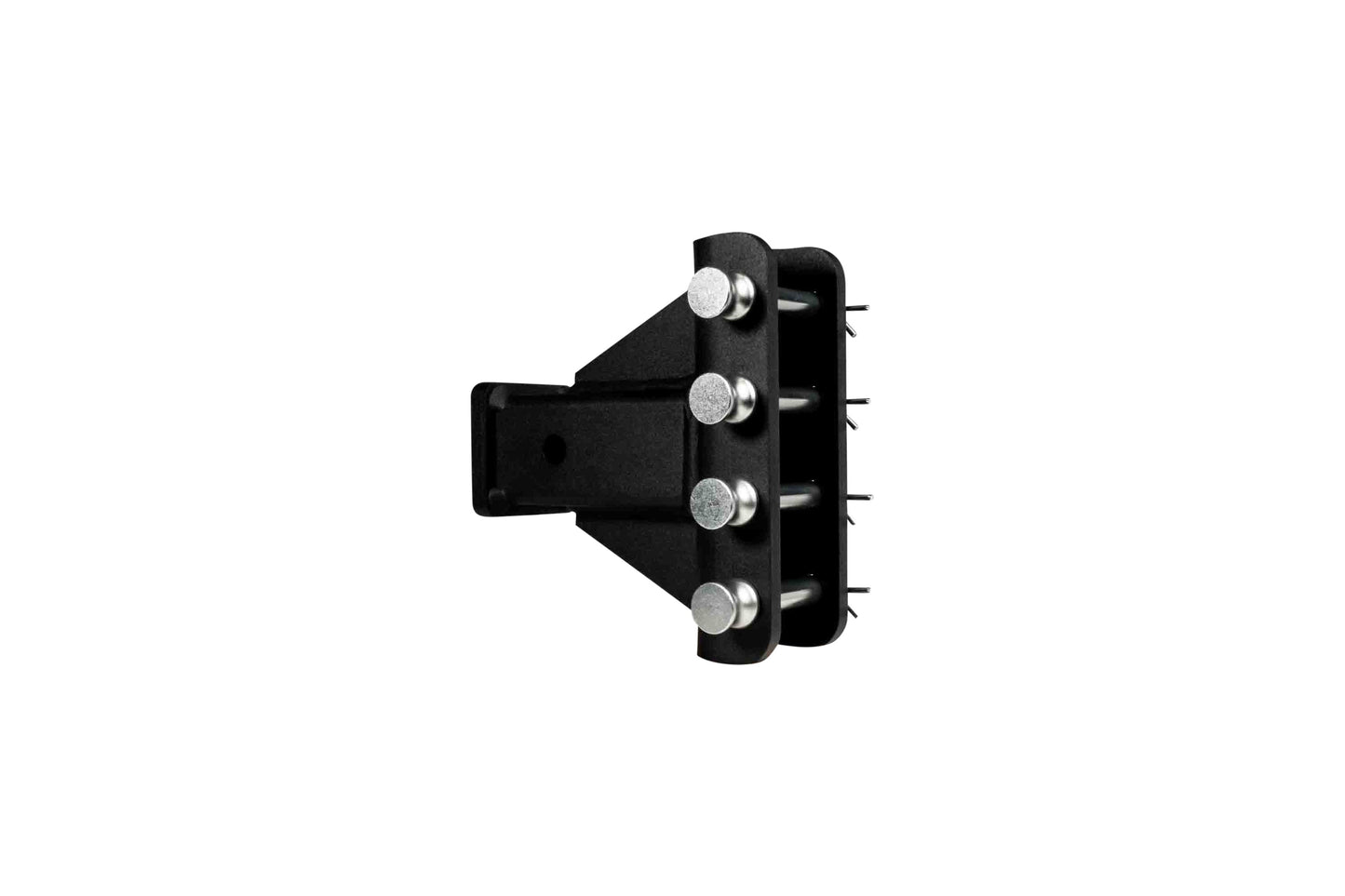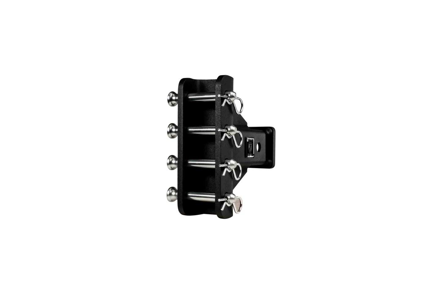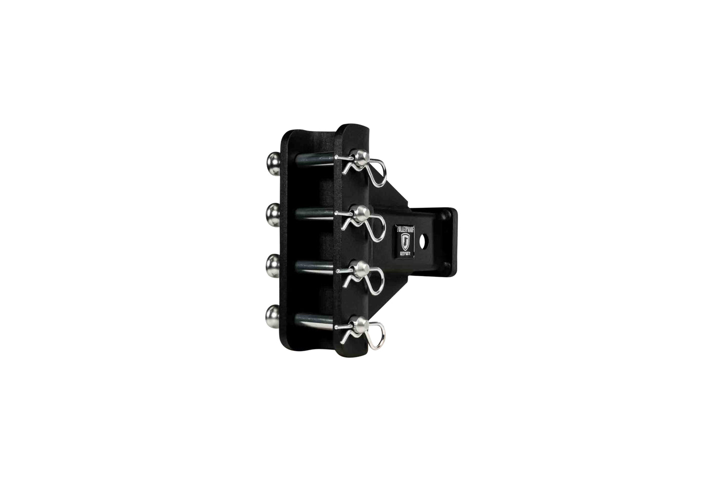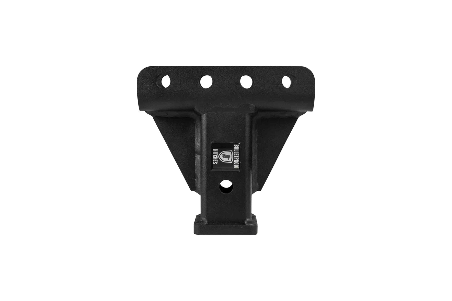Finished in our signature black, textured powder coat, the Heavy Duty Receiver Attachment comes with a total of five corrosion resistant pins and R-clips. Four secure the attachment into the channel of your BulletProof Hitch®, and the remaining pin will be used to secure the 2" receiver accessory that you are using into the receiver tube of the attachment.