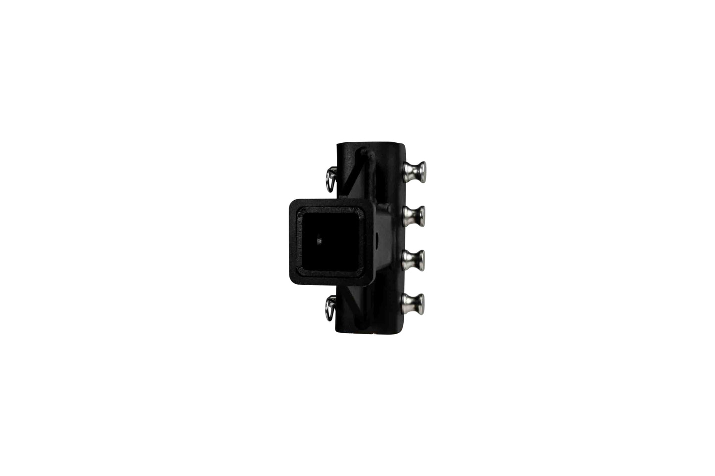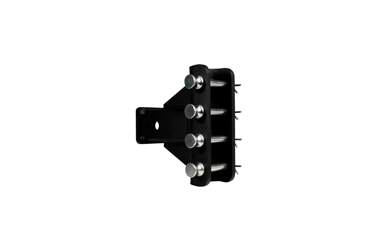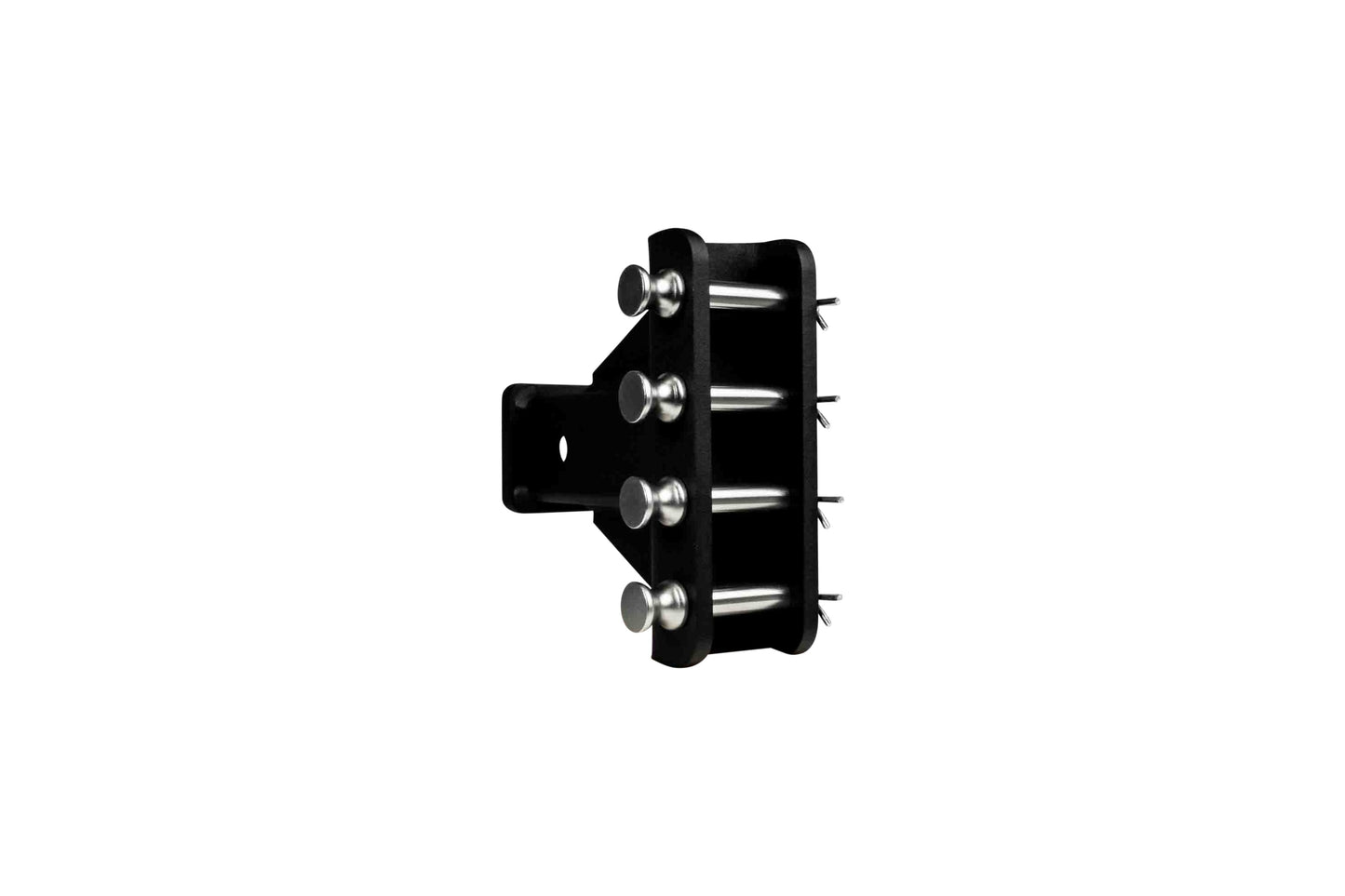 Finished in our signature black, textured powder coat, the Heavy Duty Receiver Attachment comes with a total of five corrosion resistant pins and R-clips. Four secure the attachment into the channel of your BulletProof Hitch®, and the remaining pin will be used to secure the 2" receiver accessory that you are using into the receiver tube of the attachment.