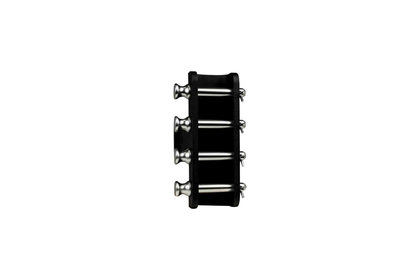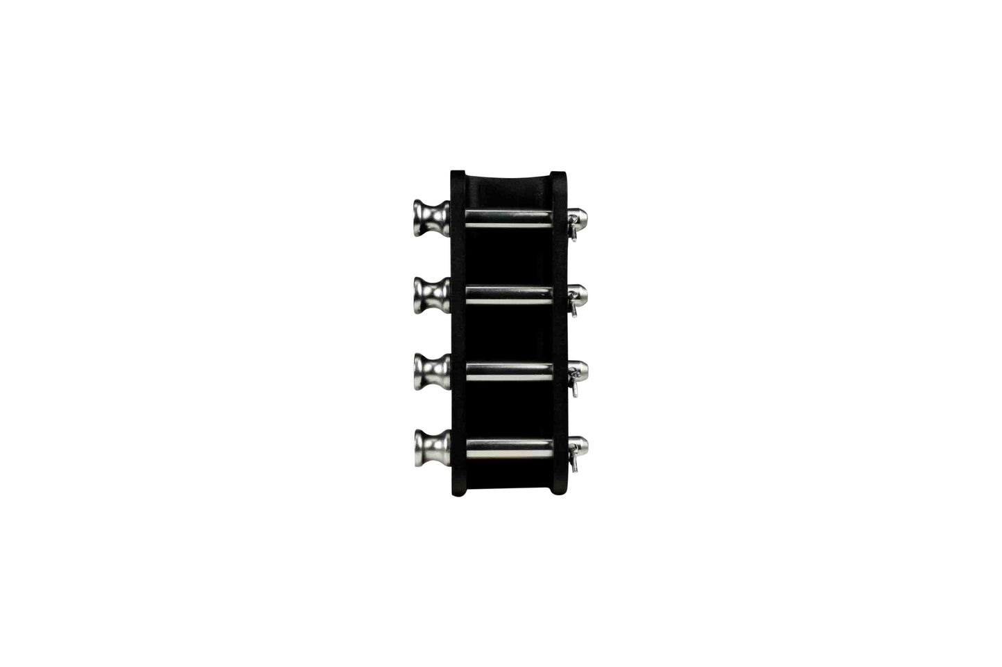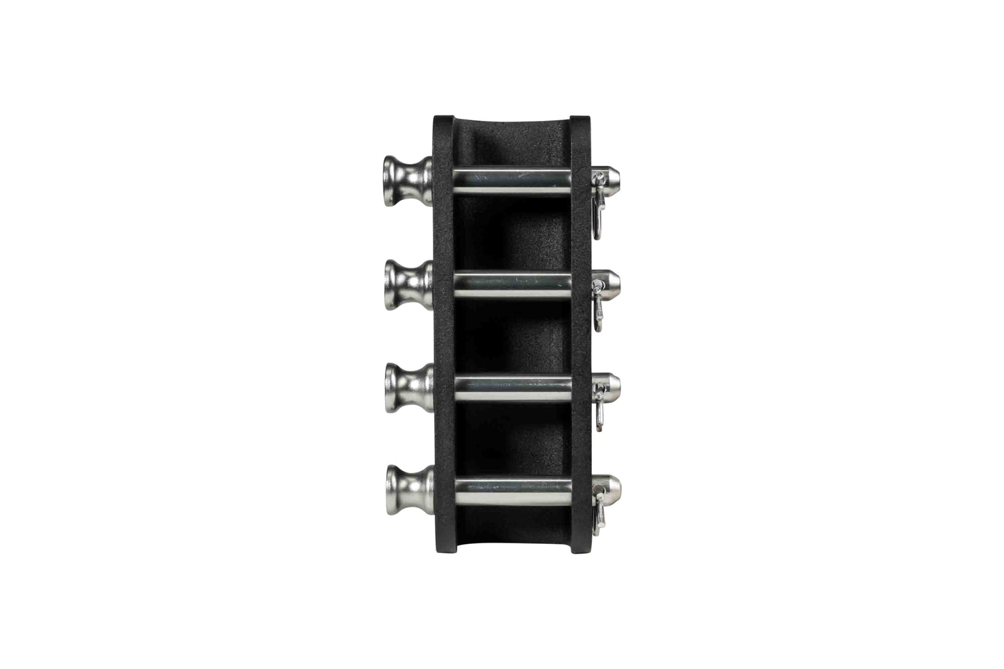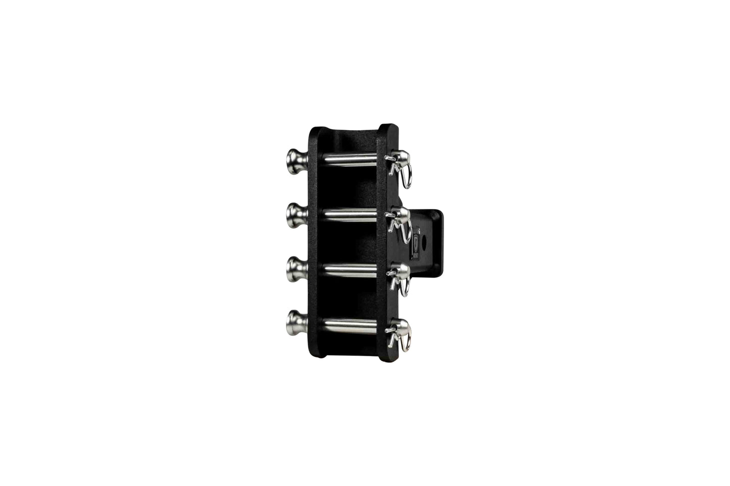 Finished in our signature black, textured powder coat, the Heavy Duty Receiver Attachment comes with a total of five corrosion resistant pins and R-clips. Four secure the attachment into the channel of your BulletProof Hitch®, and the remaining pin will be used to secure the 2" receiver accessory that you are using into the receiver tube of the attachment.