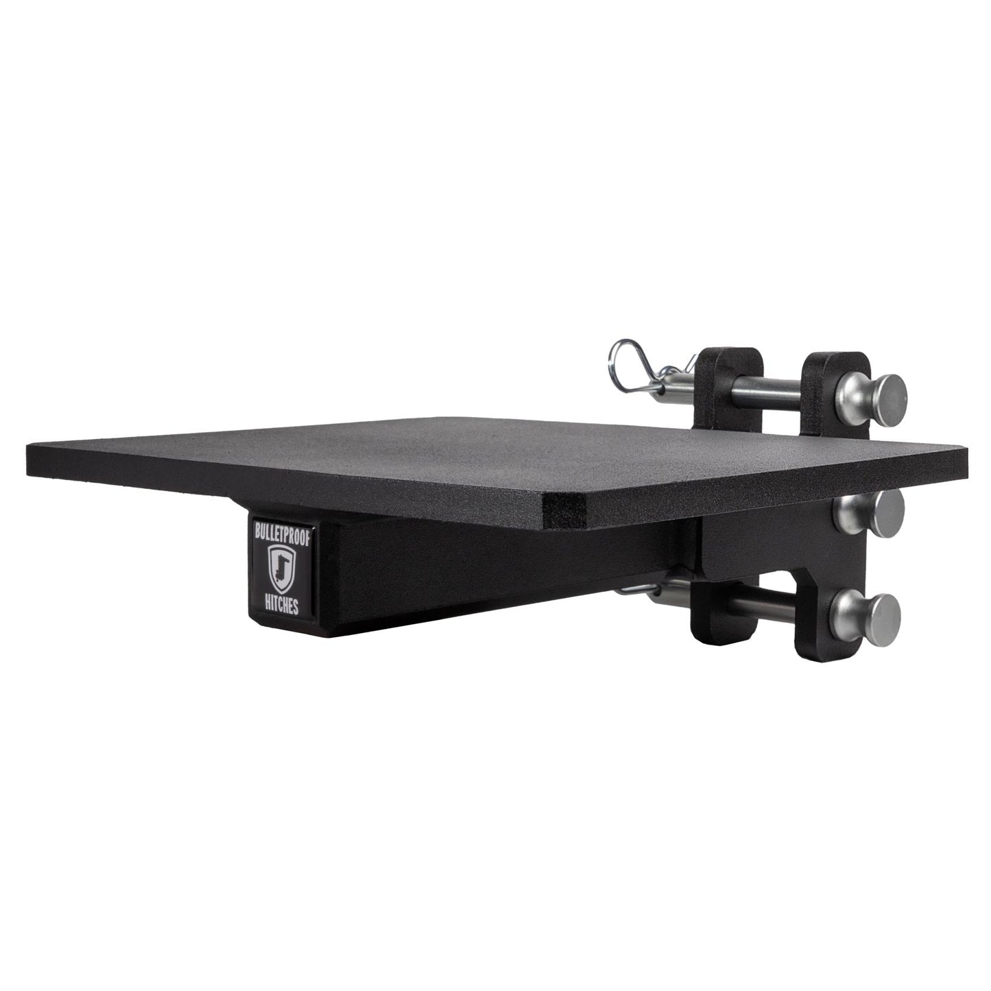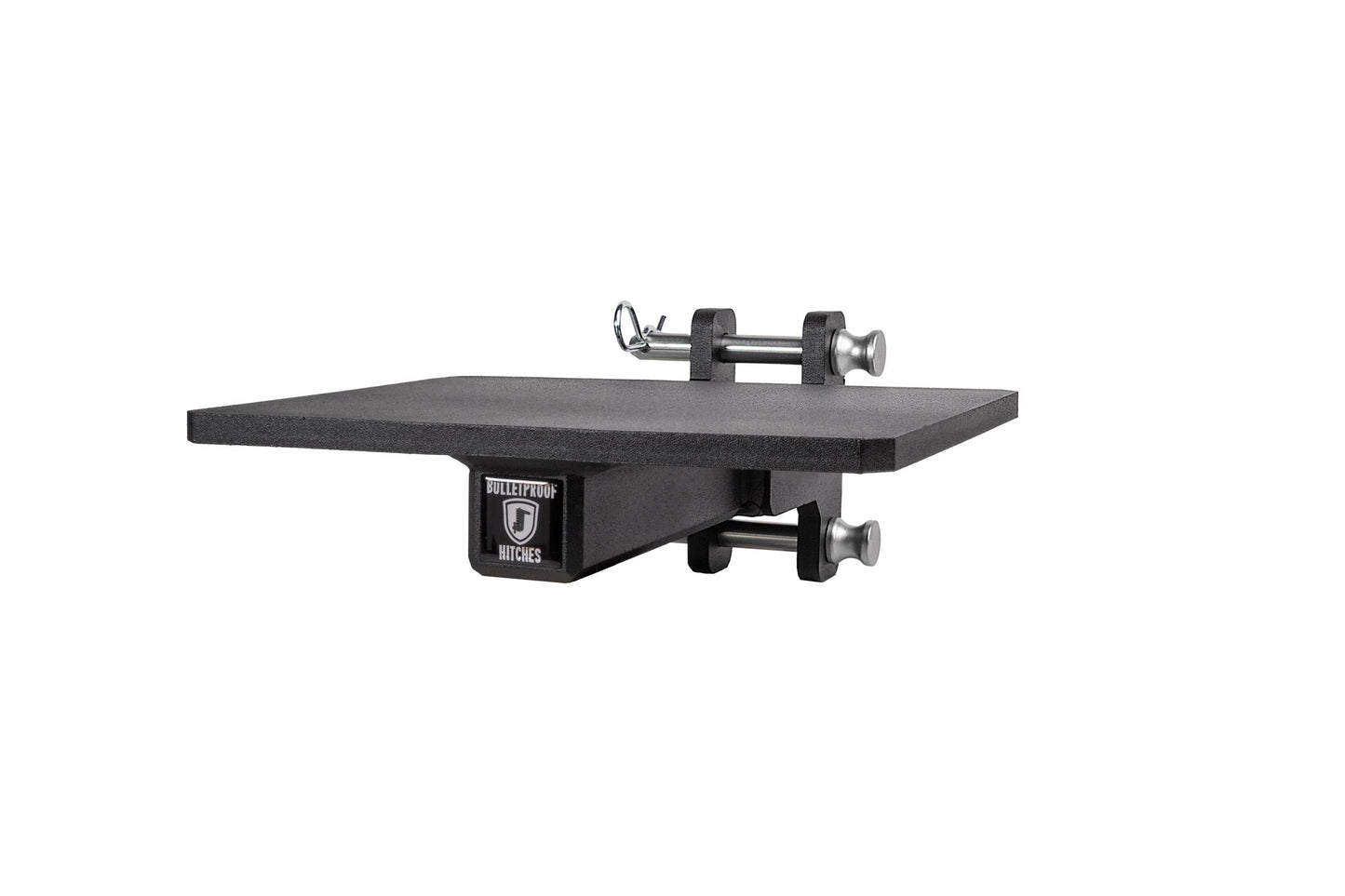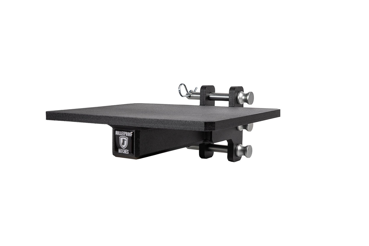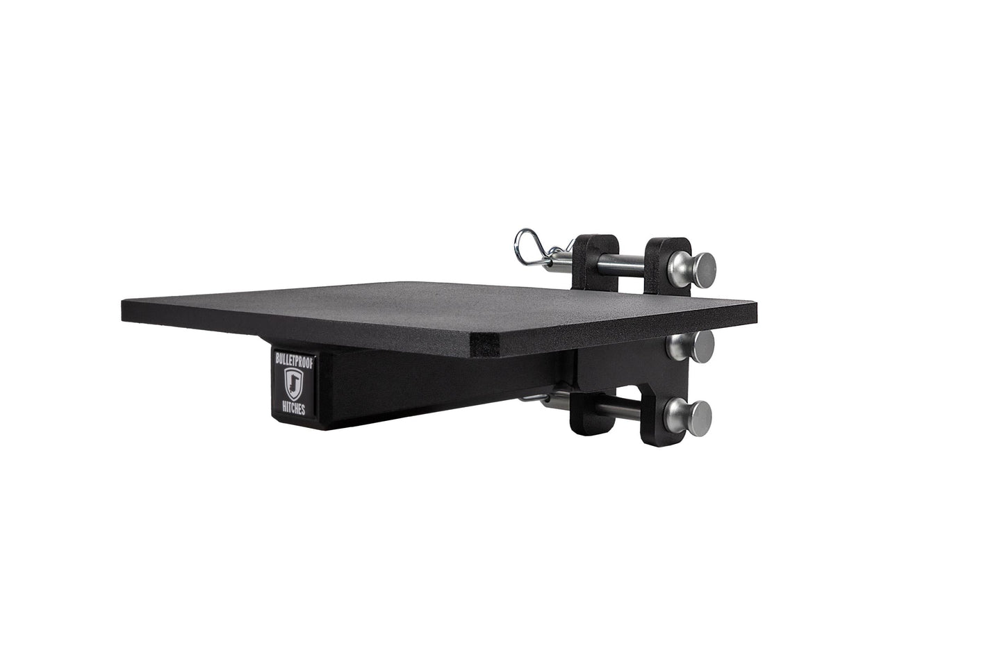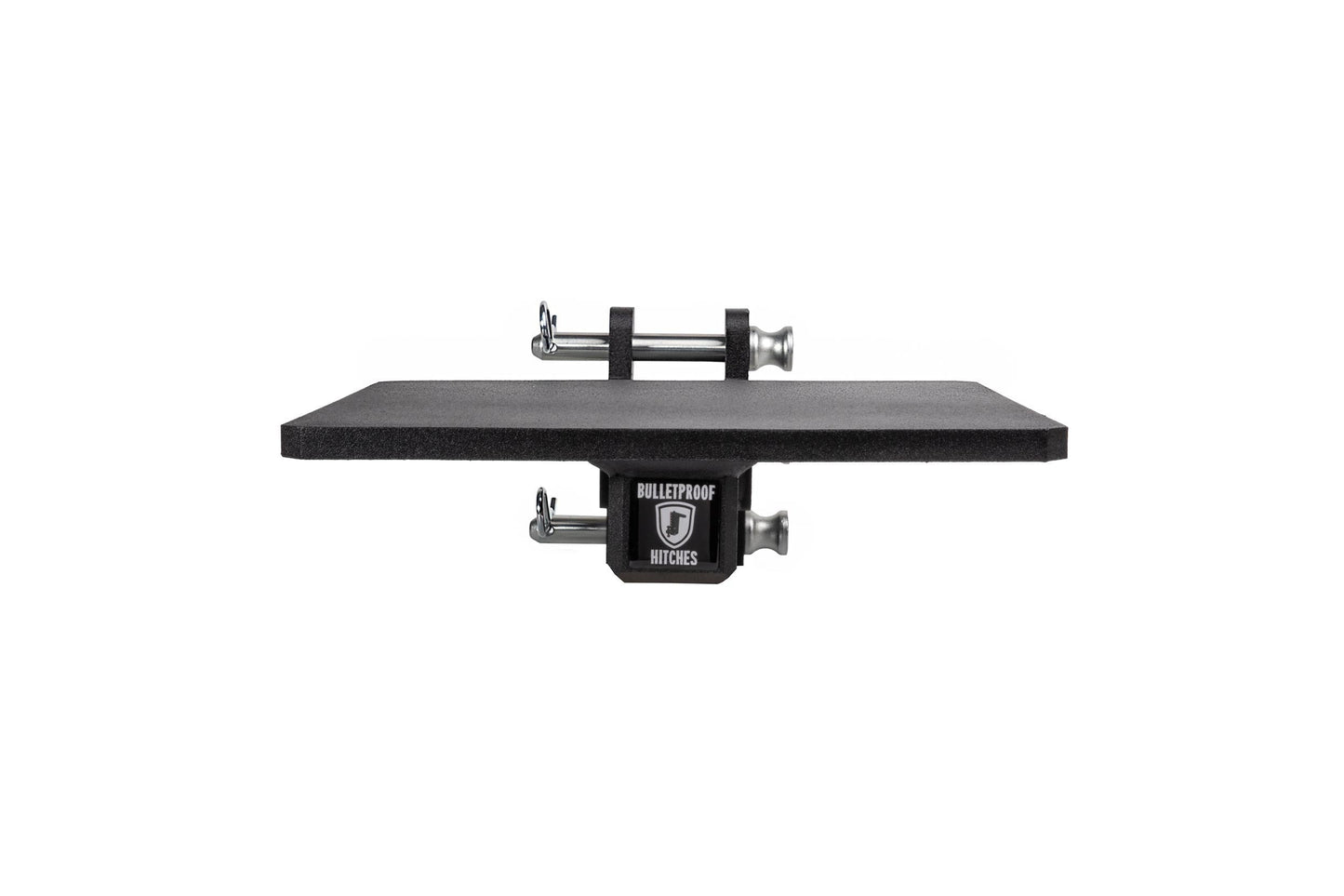 It is easily mounted to the channel of any steel BulletProof Hitch® and is secured by three pins.