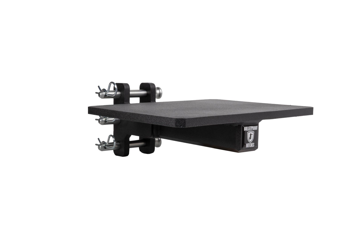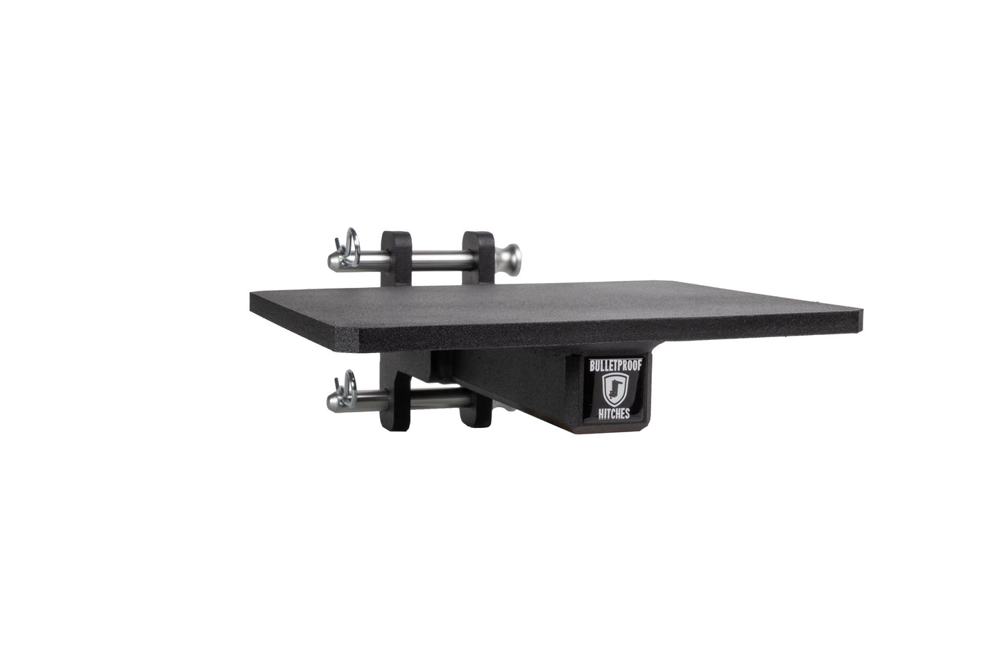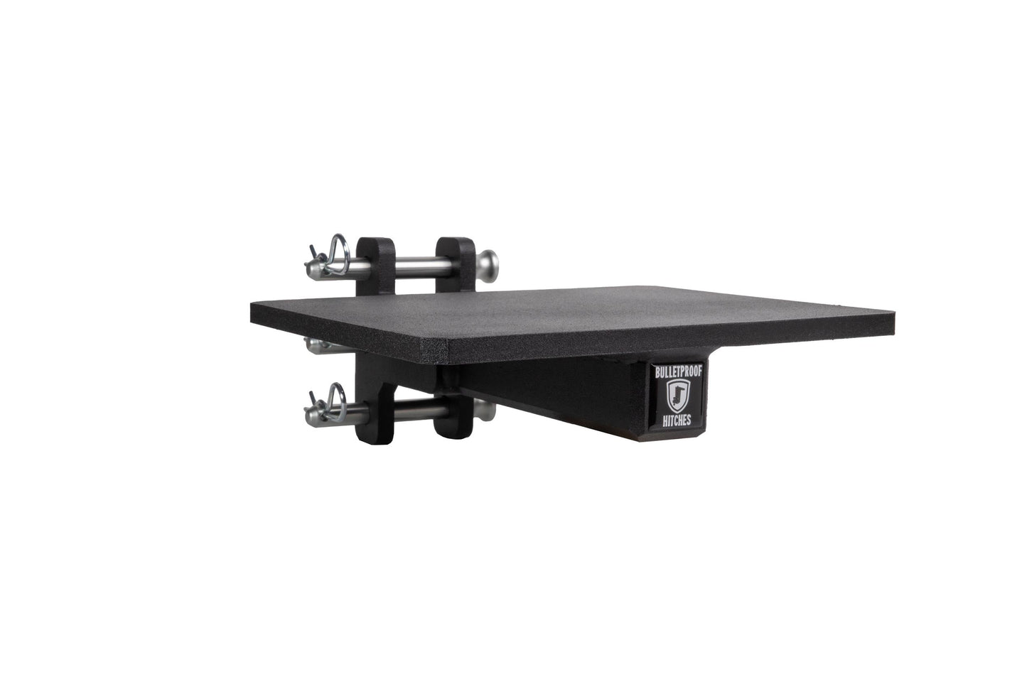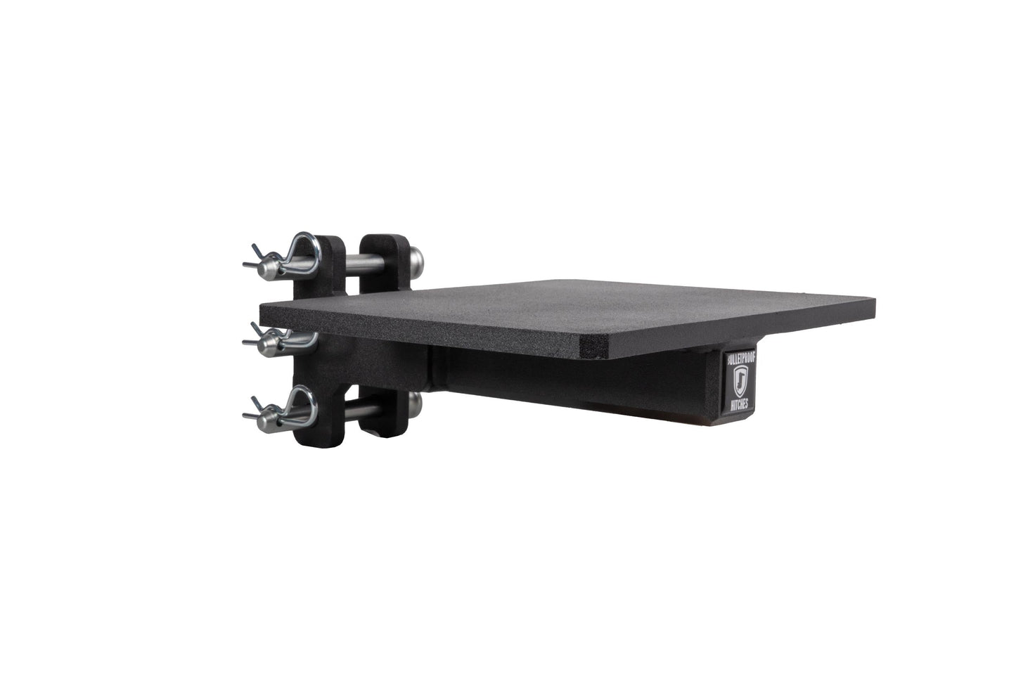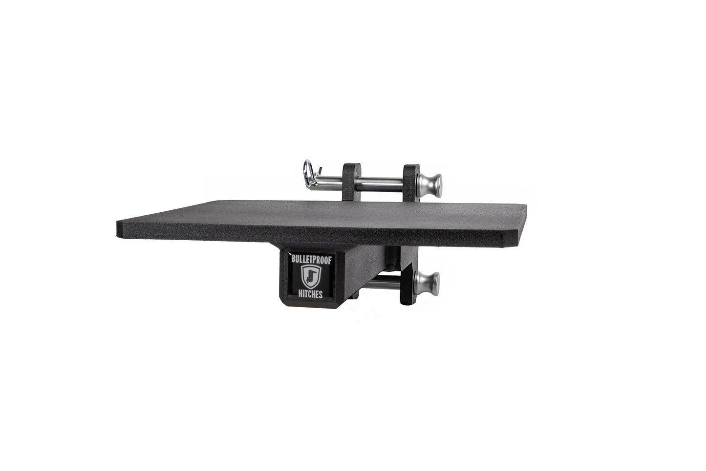 It is easily mounted to the channel of any steel BulletProof Hitch® and is secured by three pins.