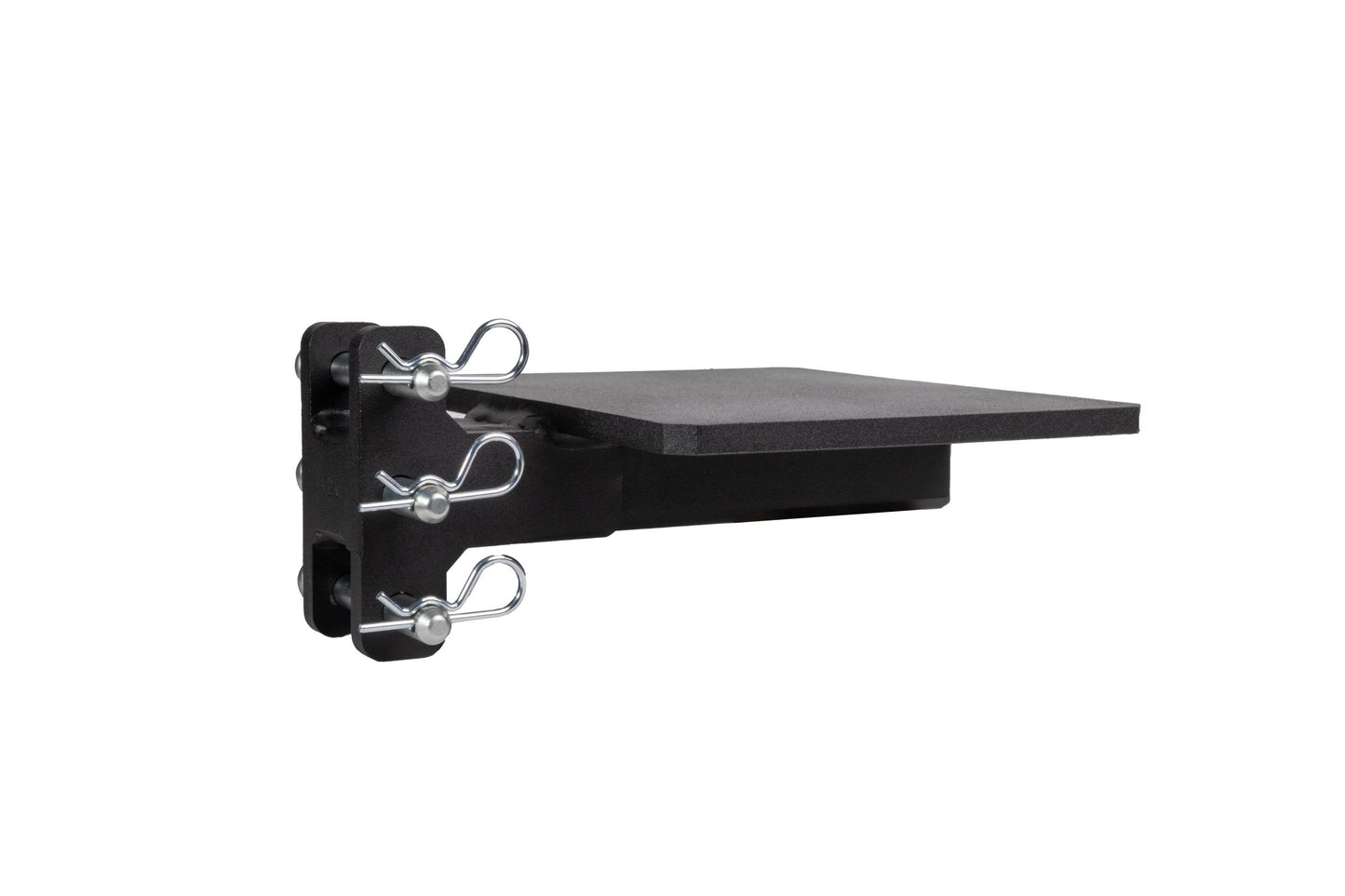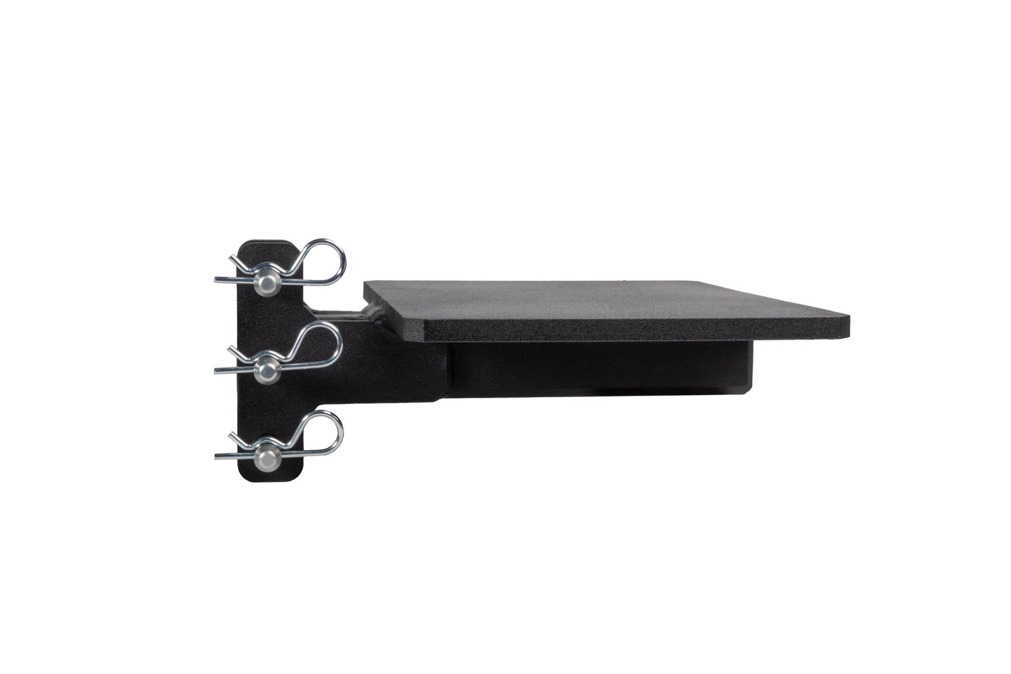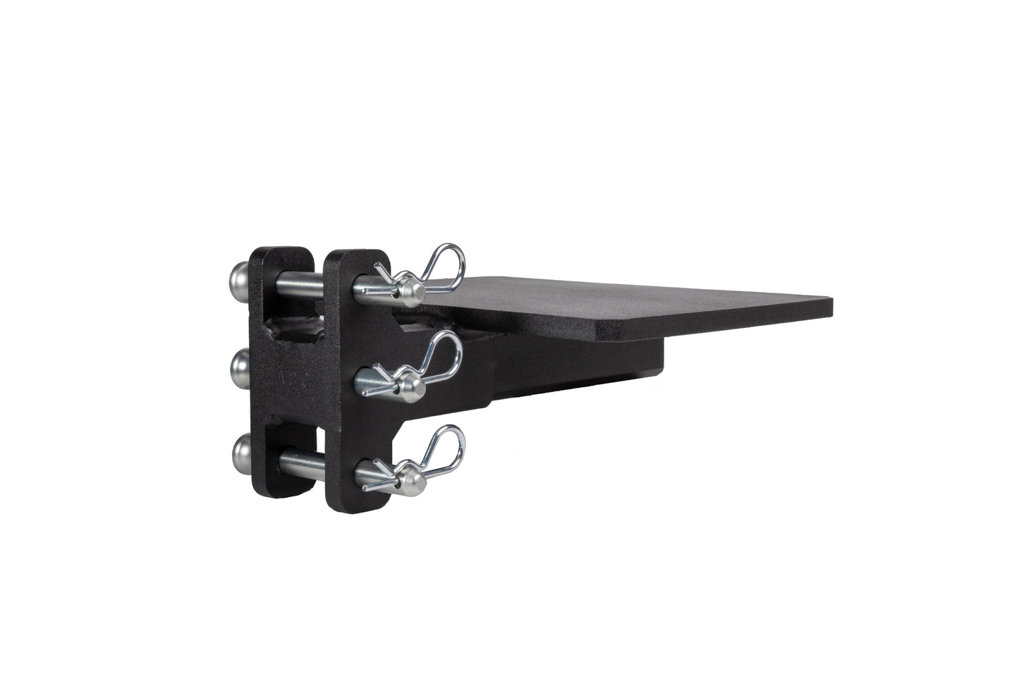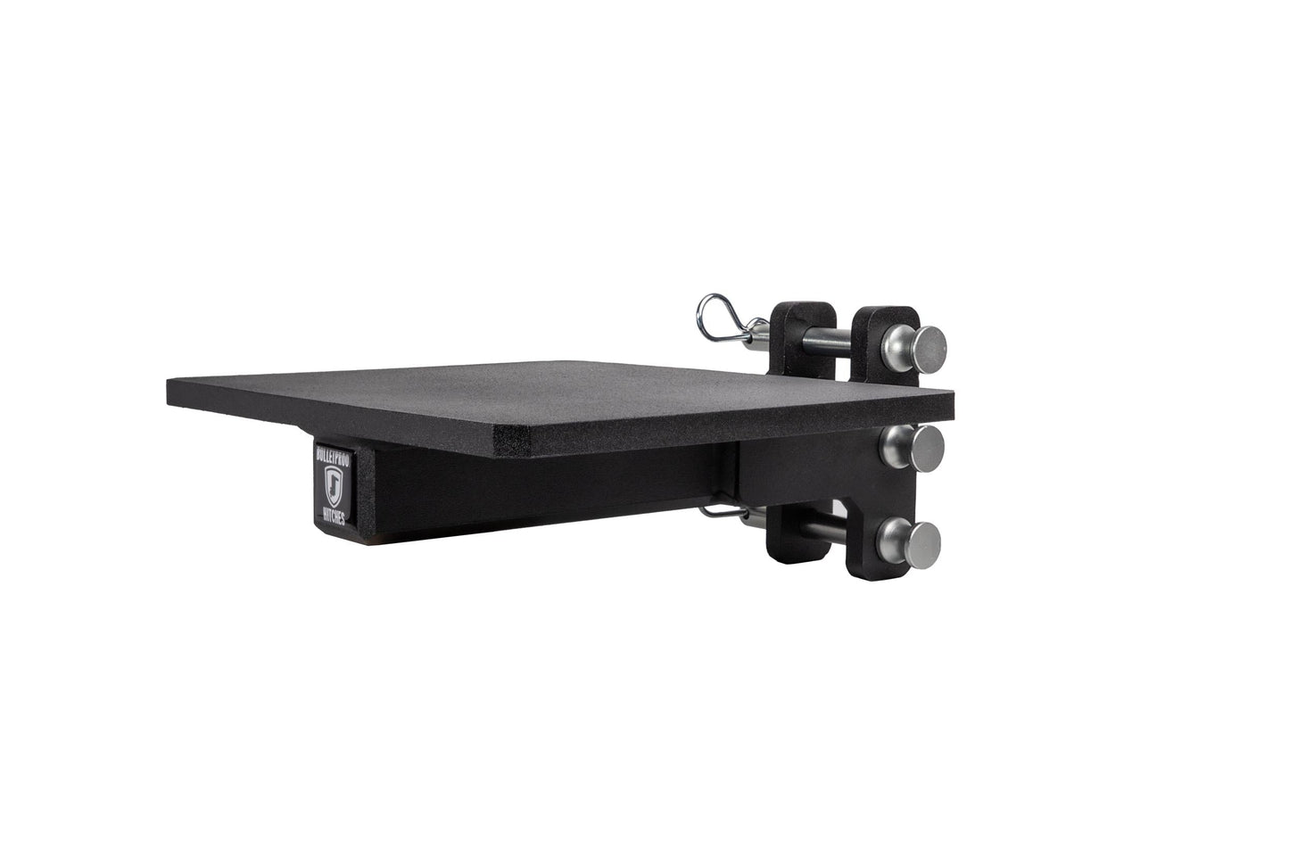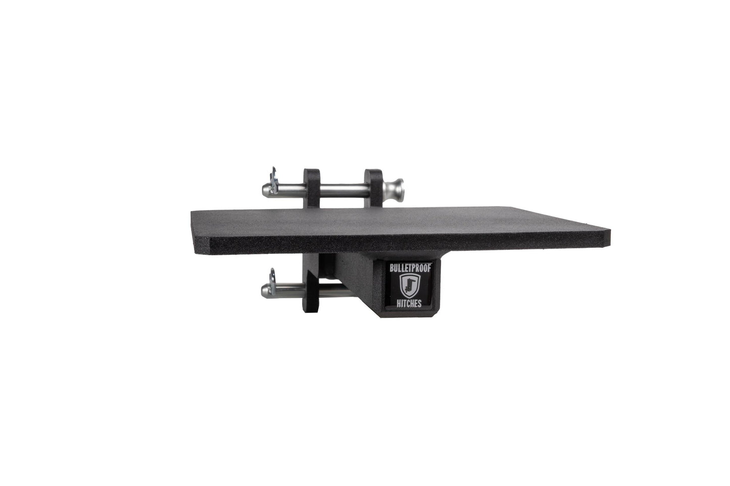 It is easily mounted to the channel of any steel BulletProof Hitch® and is secured by three pins.
