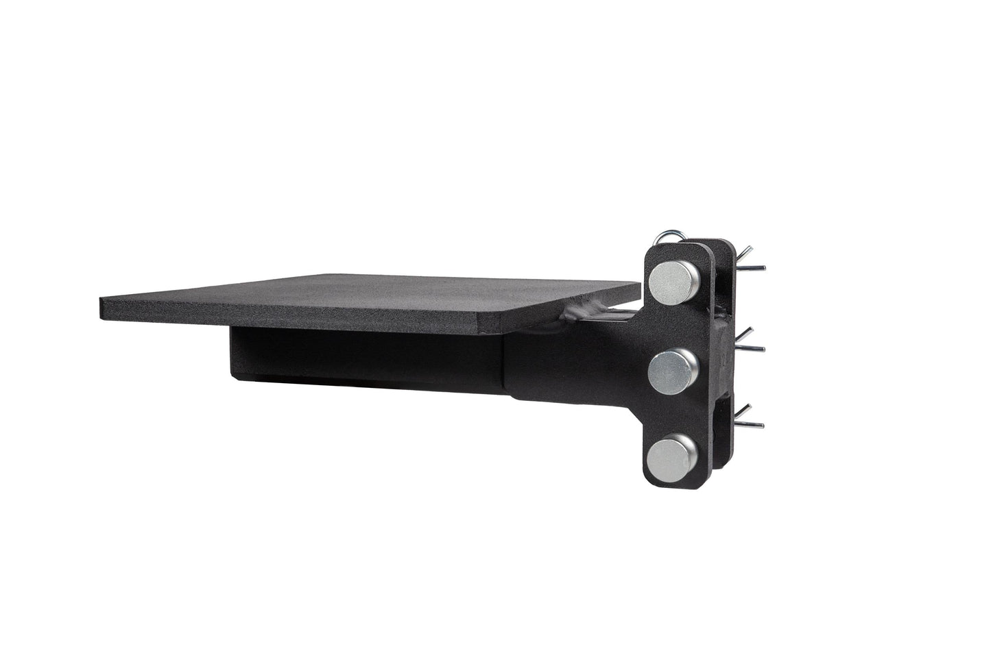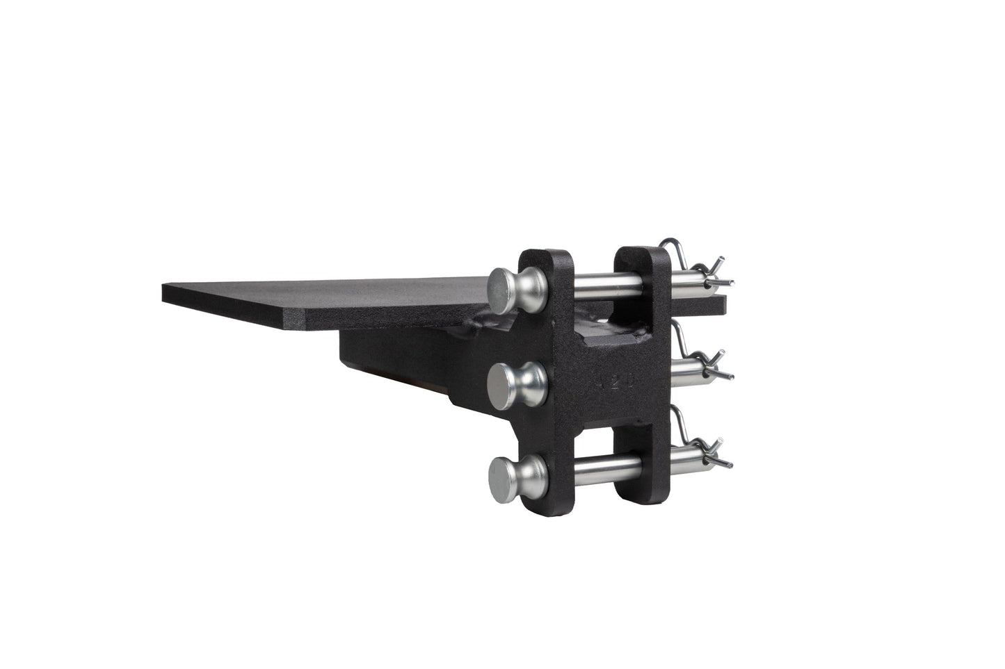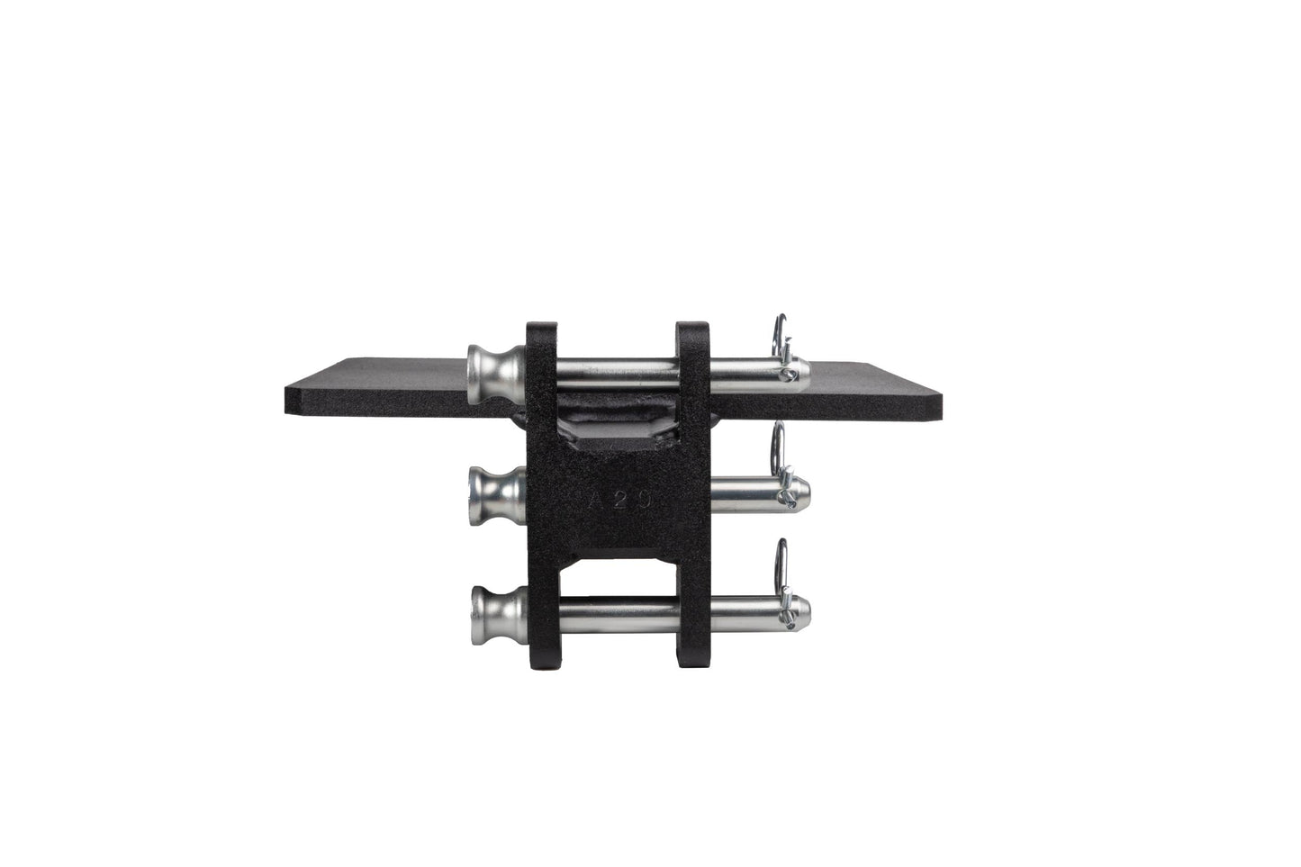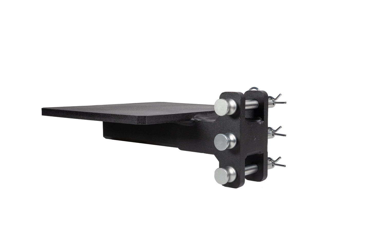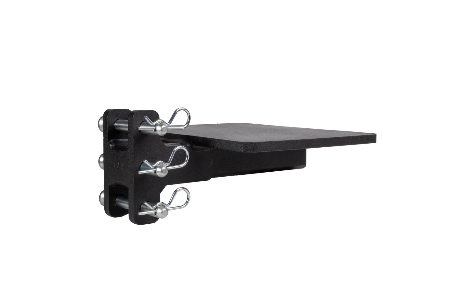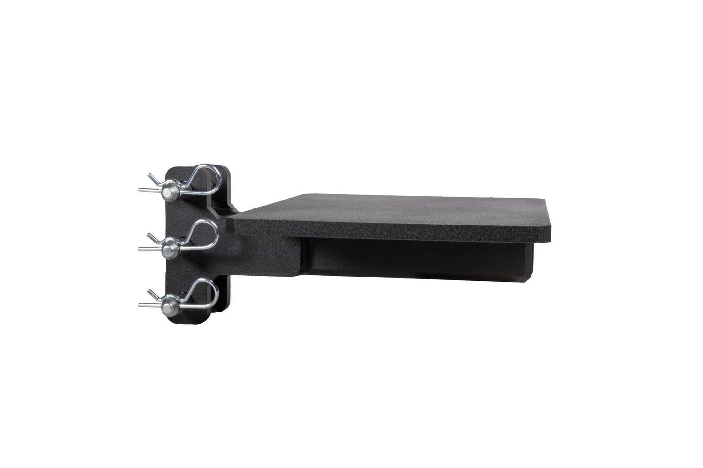 It is easily mounted to the channel of any steel BulletProof Hitch® and is secured by three pins.