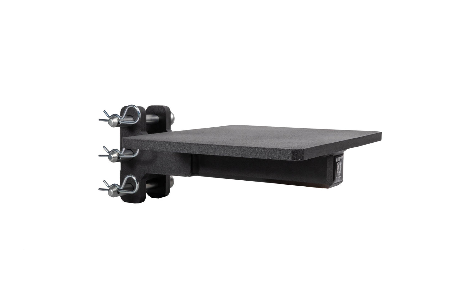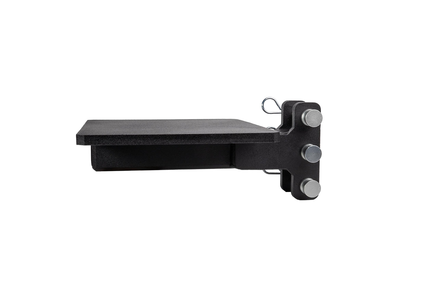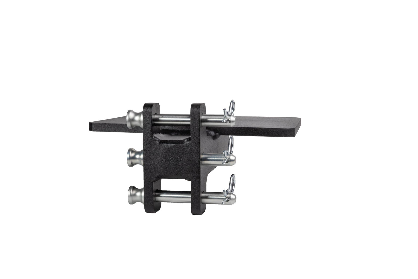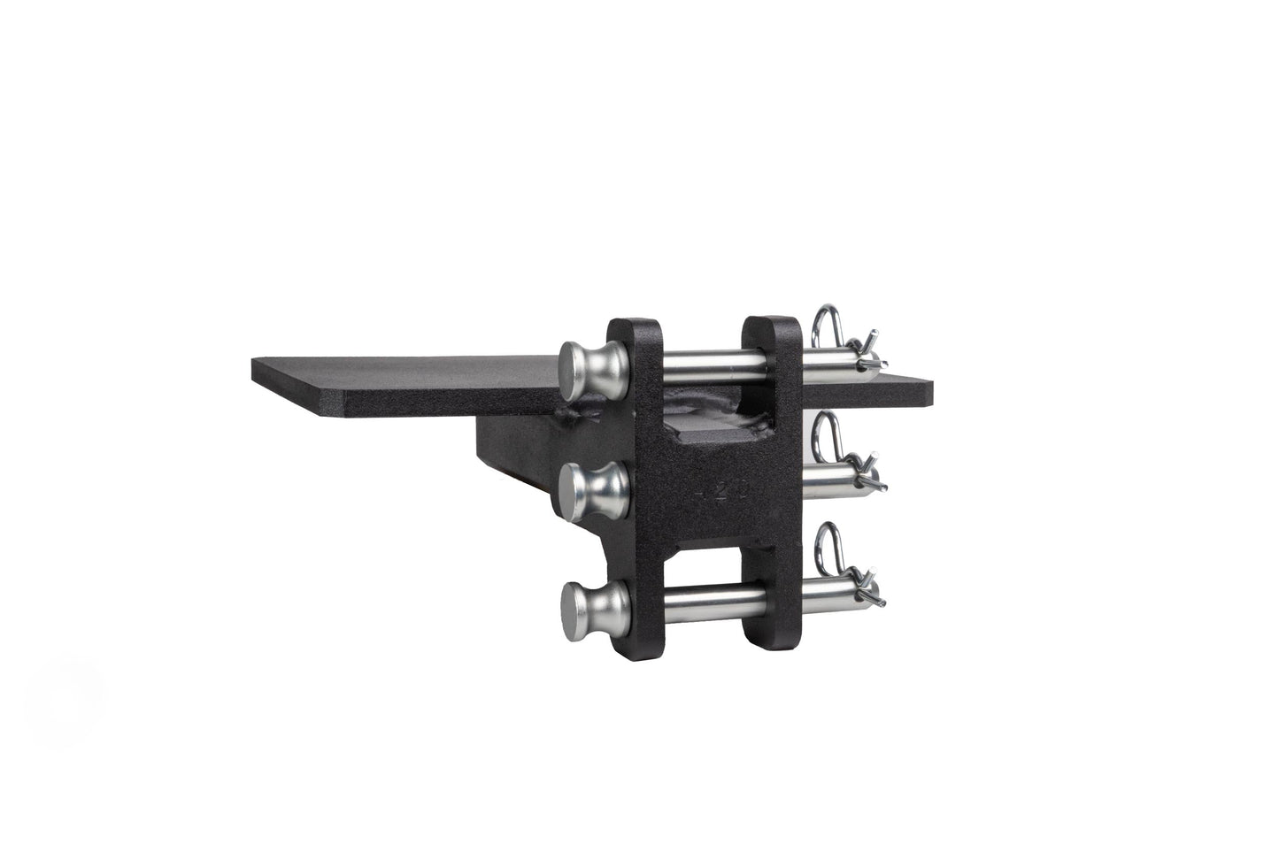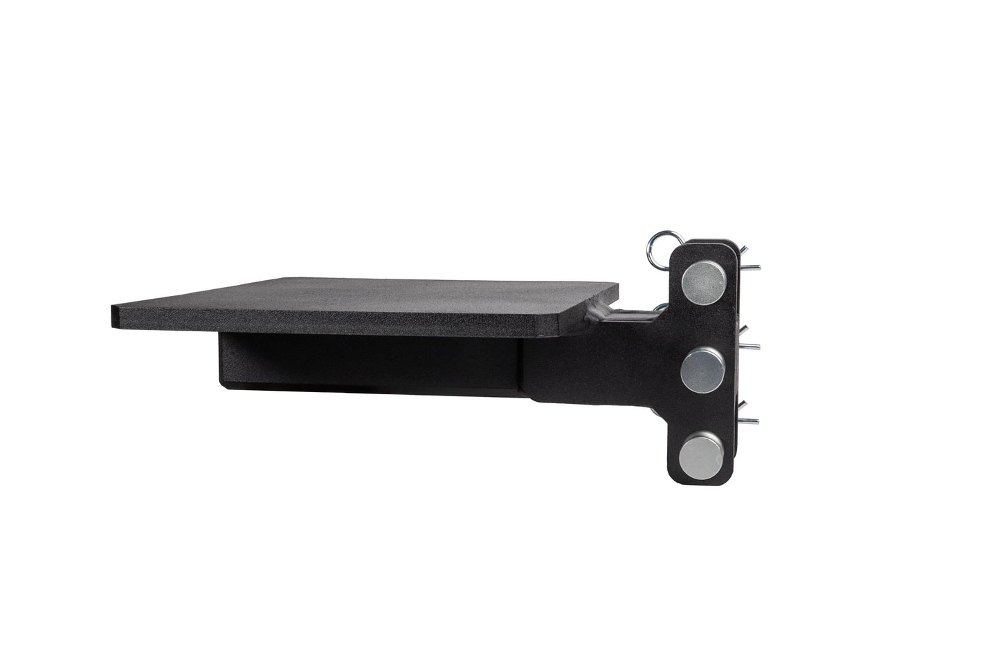 It is easily mounted to the channel of any steel BulletProof Hitch® and is secured by three pins.