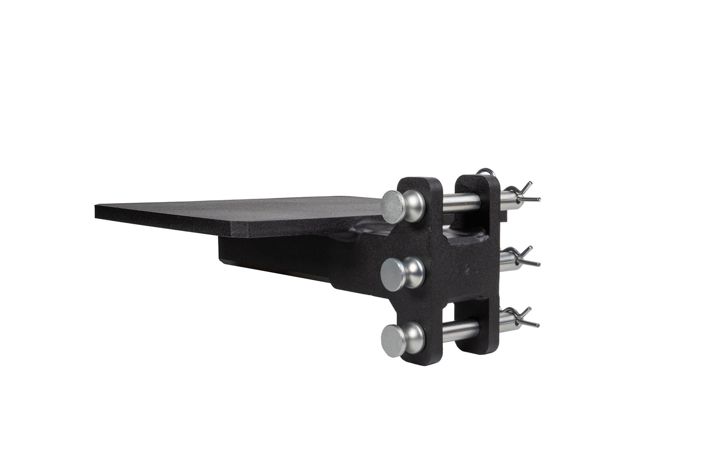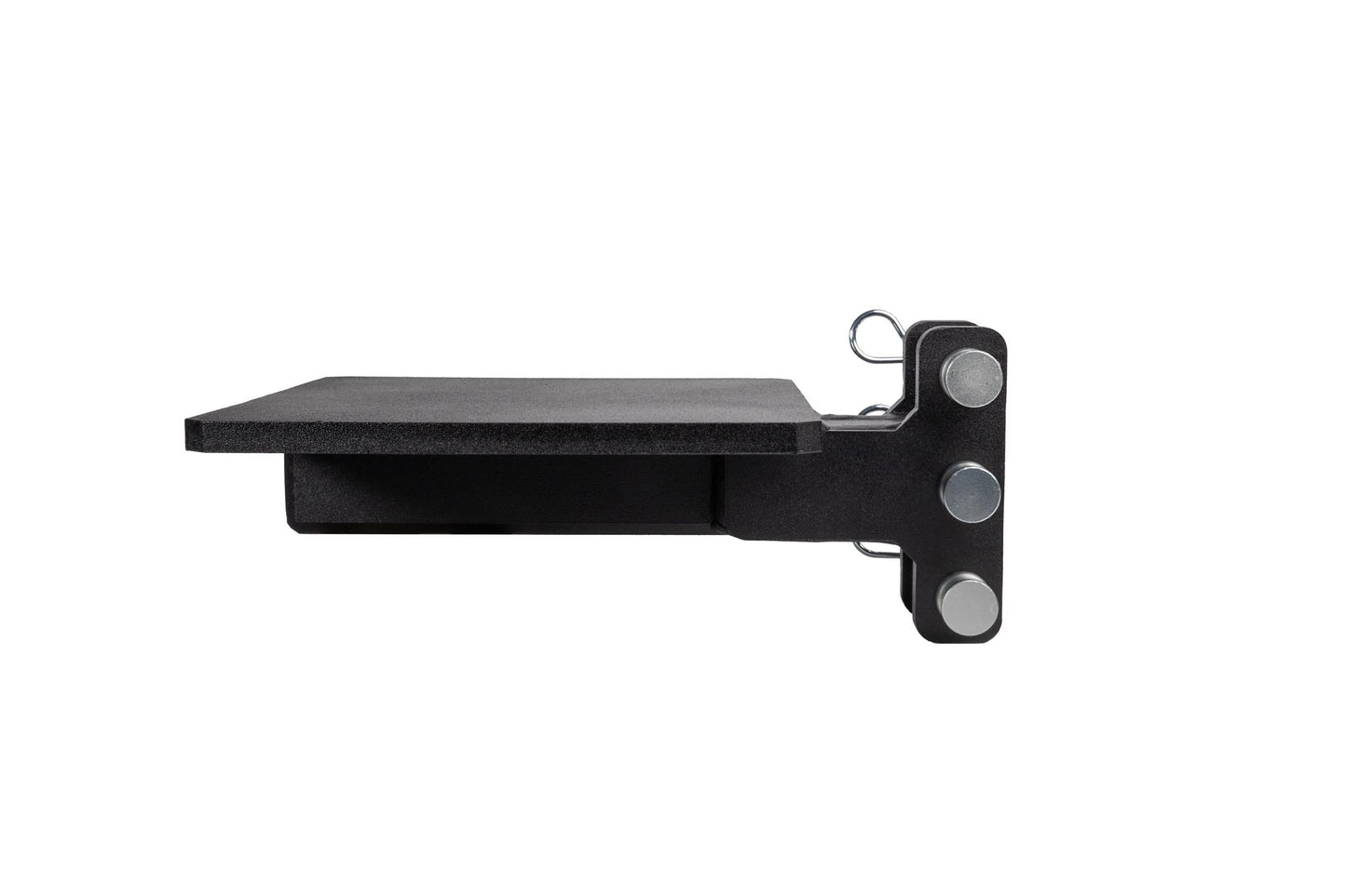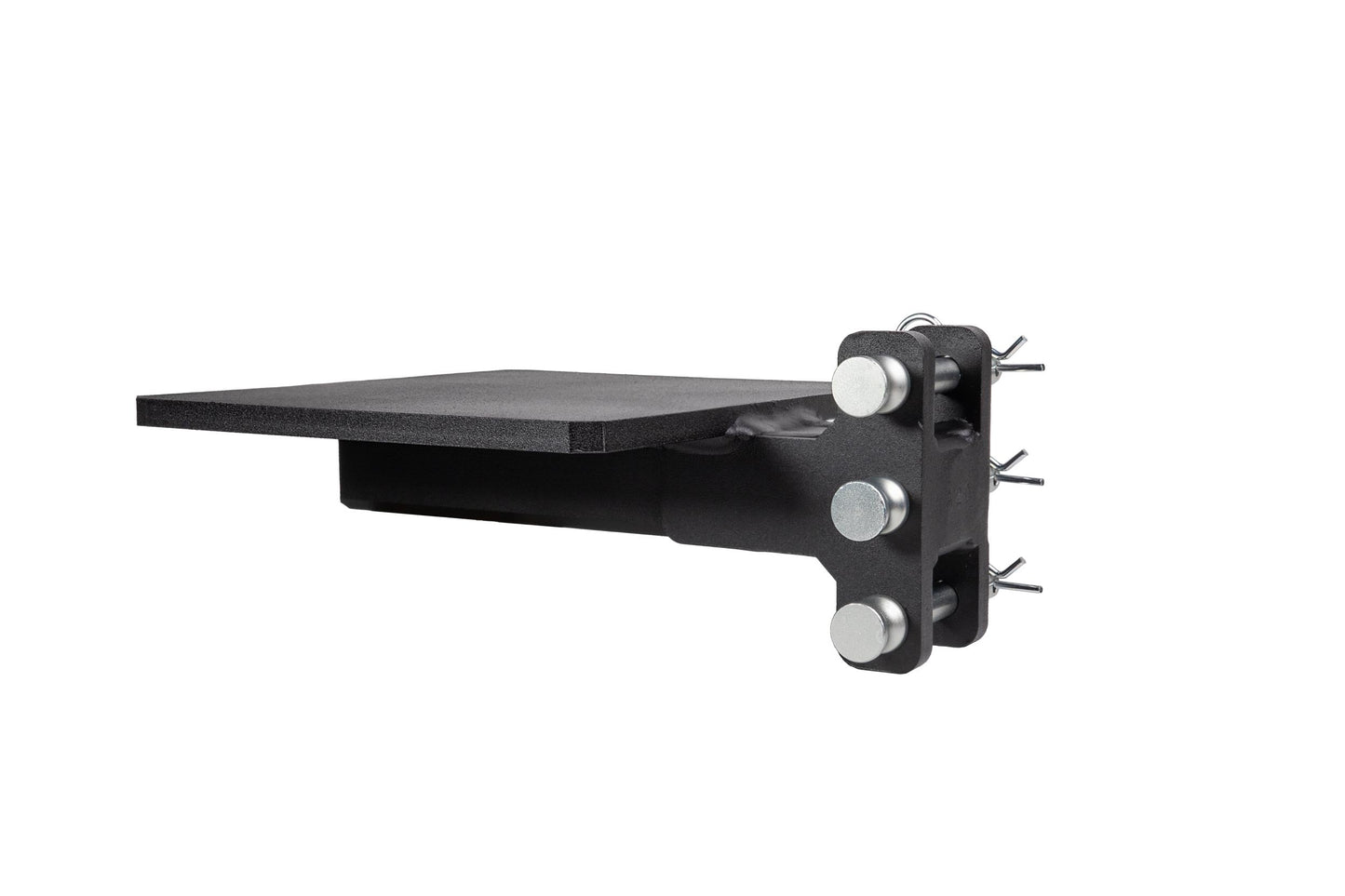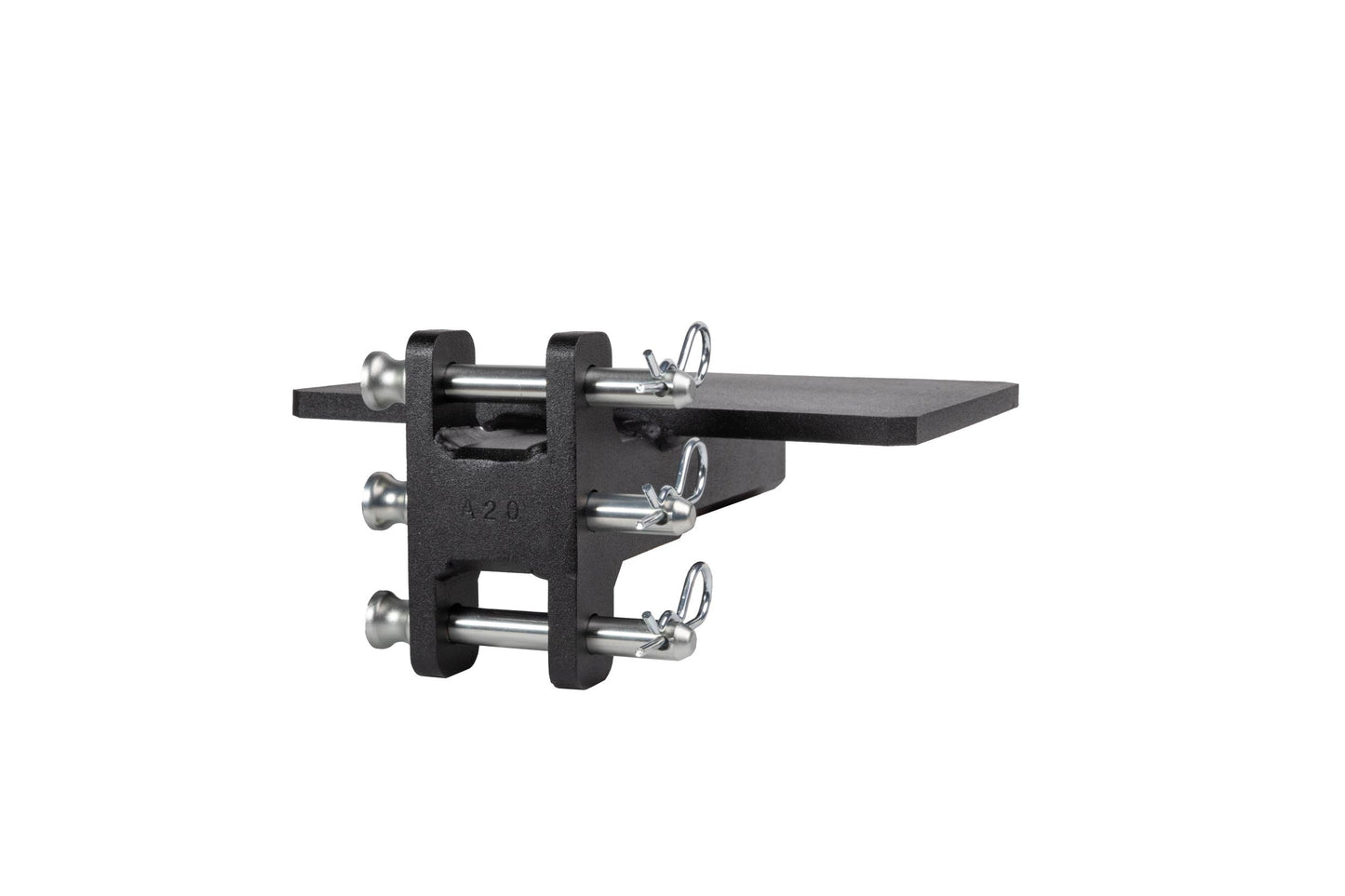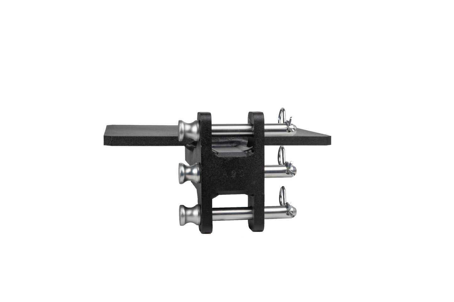 It is easily mounted to the channel of any steel BulletProof Hitch® and is secured by three pins.