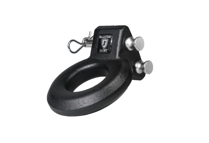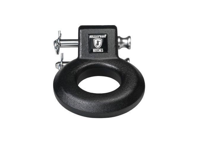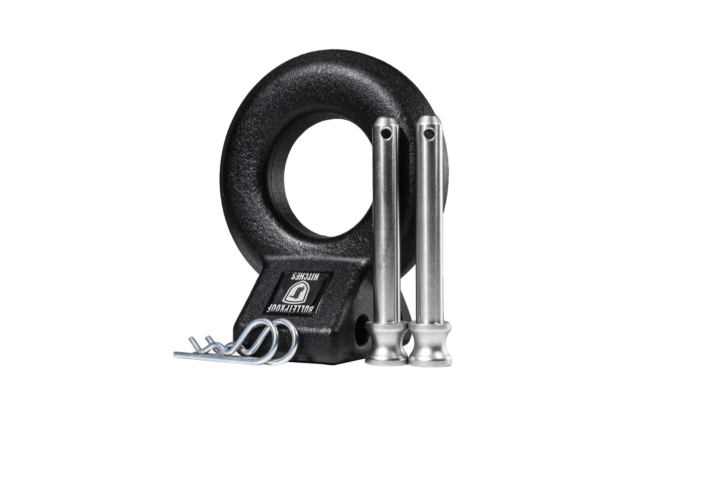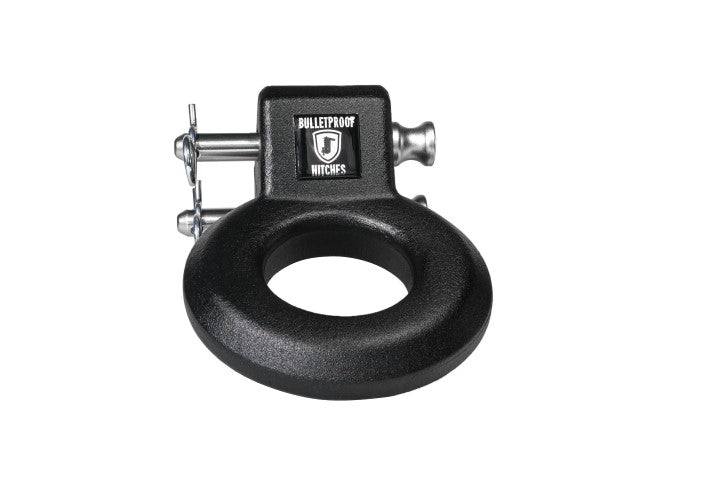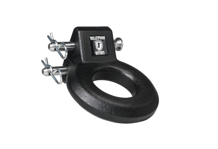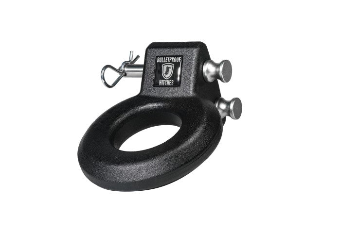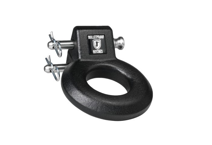 The BulletProof lunette ring/loop design works with any of our hitches. It is fully adjustable by removing the two hardened pins, moving the loop up or down in the channel, and reinserting the pins. With a towing capacity rated to 24,000 lbs and a vertical weight rating of 3,500 lbs, it’s a perfect match for any BulletProof Hitch®.
