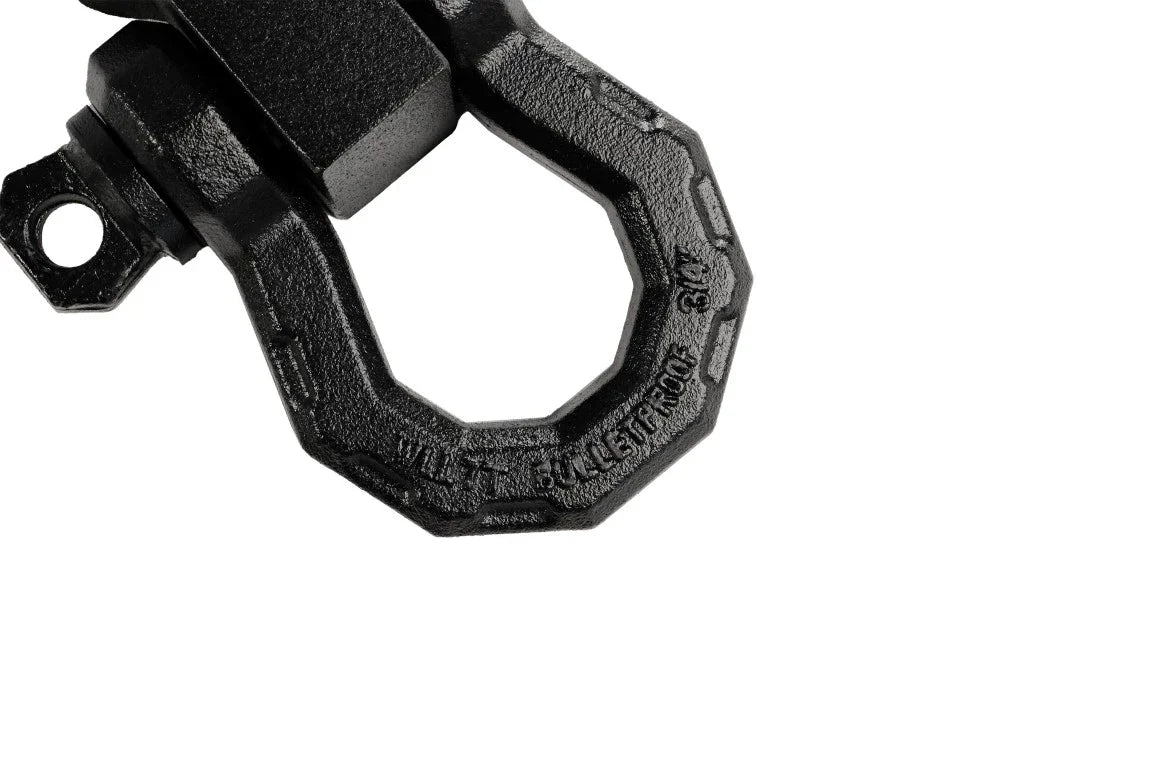 The BulletProof Medium Duty Receiver Shackle is the perfect recovery solution for your Jeep or Side-by-Side; ideal for the times you need to attach a rope, strap or a chain. Rated for a maximum weight capacity of 14,000 lbs., with a Working Load Limit (WLL) of 7T, which is clearly stamped on the shackle to meet all DOT requirements.