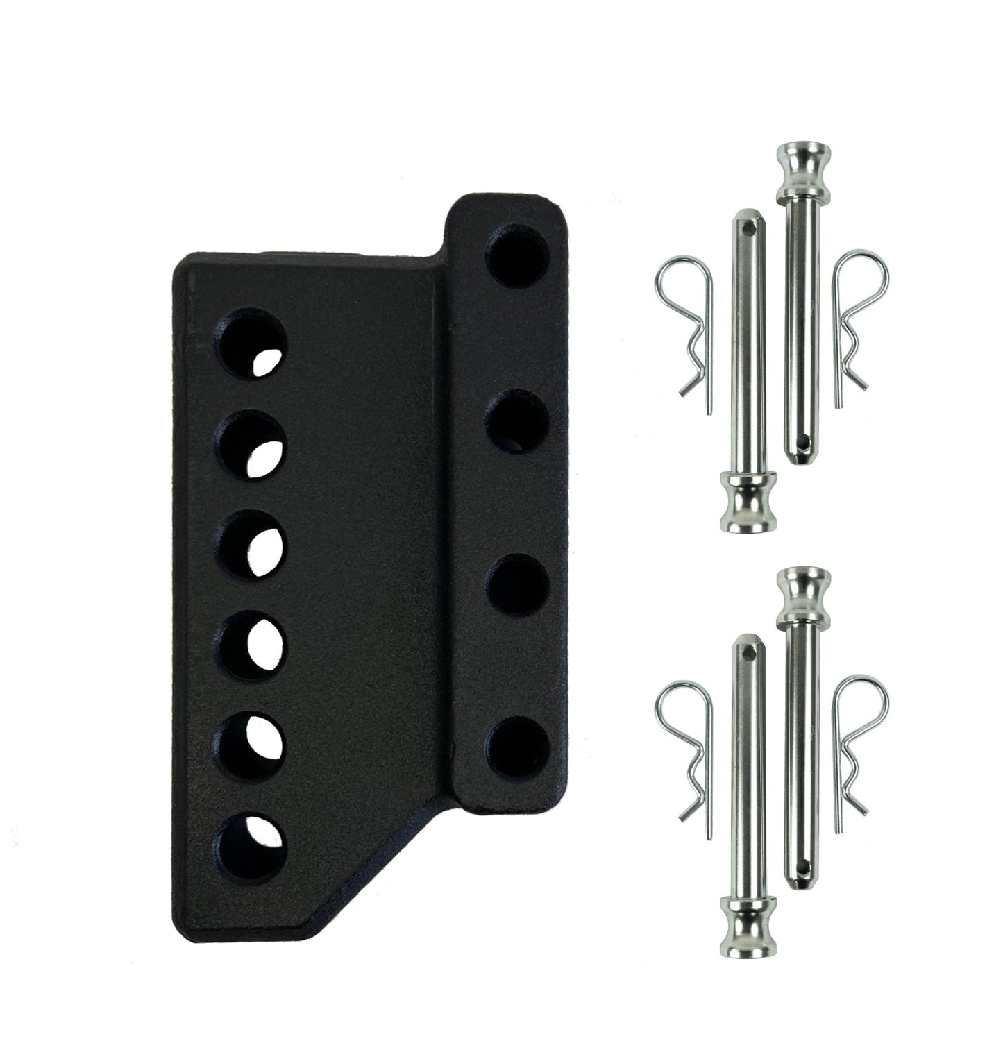This solid steel adapter allows you to attach a weight distribution system to a BulletProof Hitch. After modifying your vehicle's suspension and/or adding larger tires, you may need a hitch with a longer drop. This accessory is compatible with all BulletProof Hitches and MOST weight distribution systems. The adapter is 2" wide and the holes are 3/4" in diameter and spaced 1-1/4" on center.